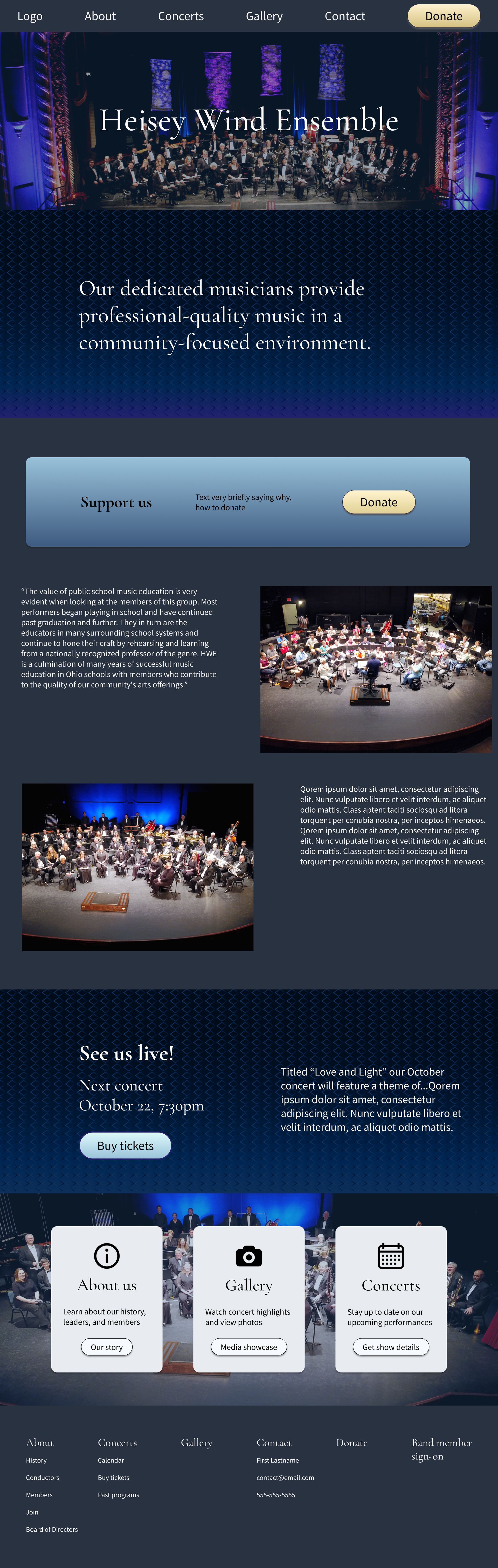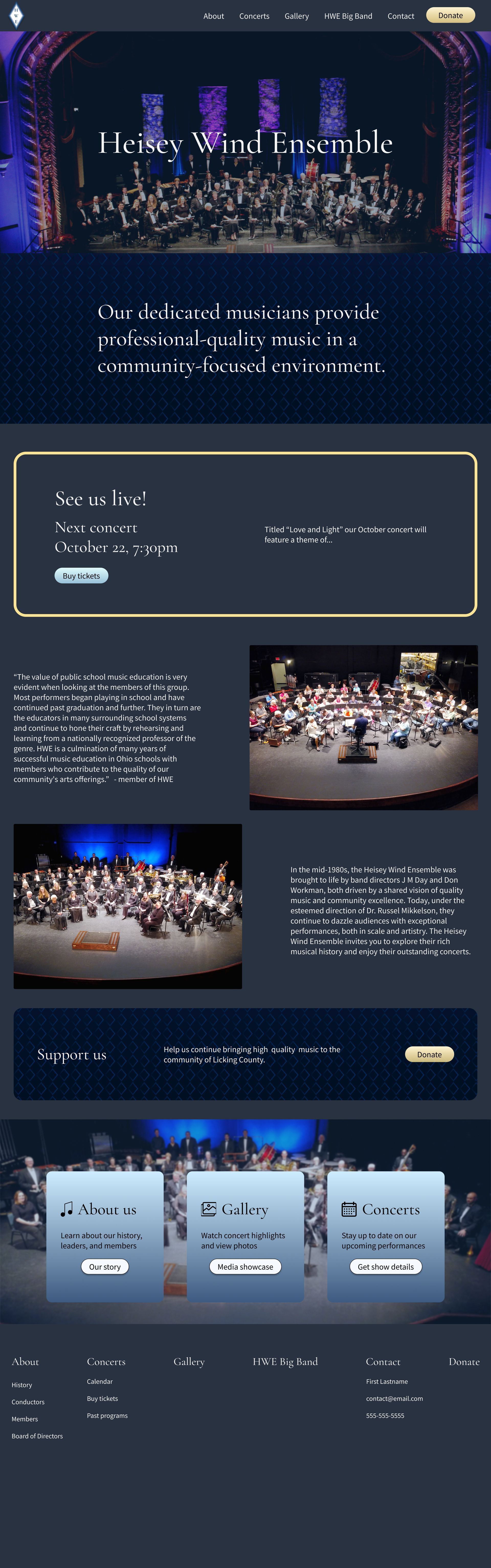 The redesign centered on storytelling, clarity, and accessibility - bringing the Heisey Wind Ensemble's artistry into a modern, usable experience