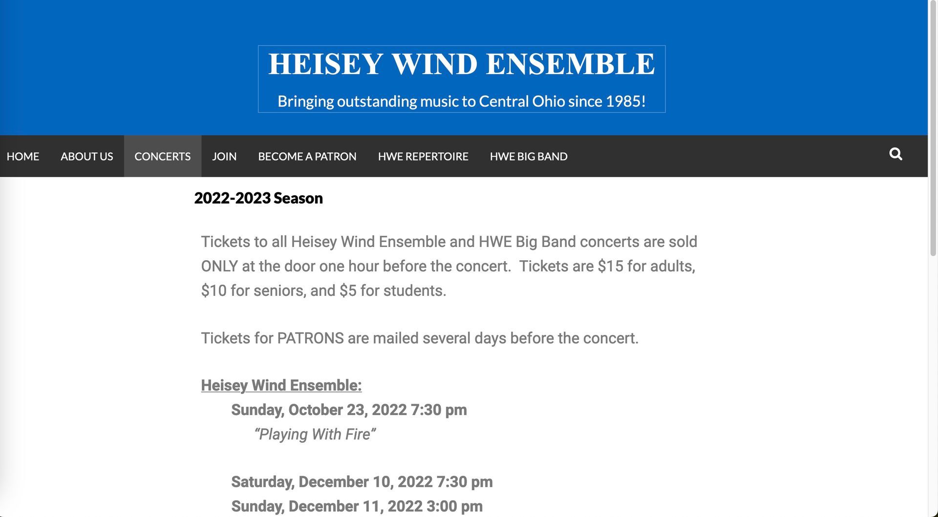 After the website build, all content was reviewed by our team, the Board of Directors, and by test users who were in the primary demographic for the Heisey Wind Ensemble.