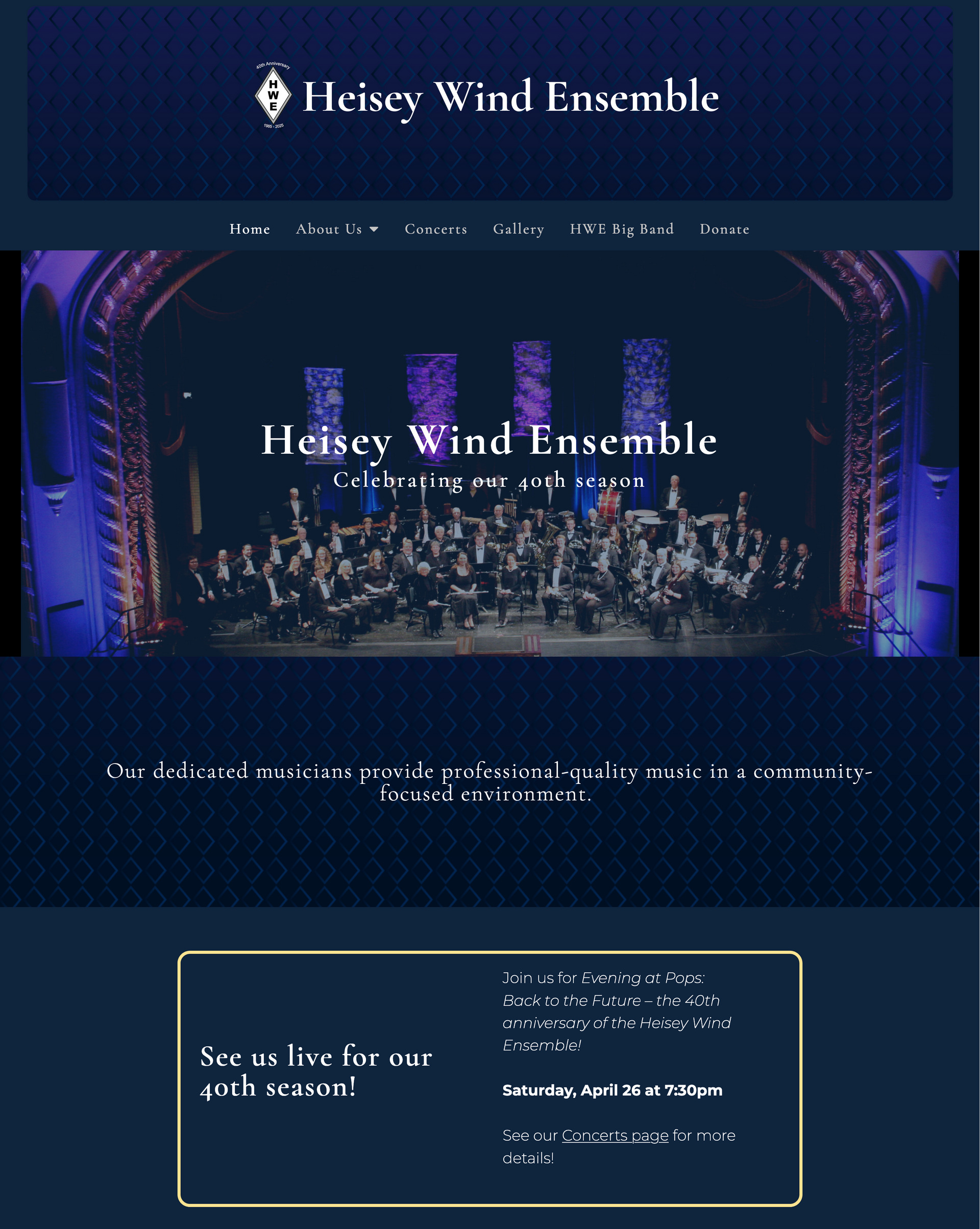 The Heisey Wind Ensemble website didn't convey their artistry or value, and it lacked the modern functionality, responsiveness, and accessibility their audience needed.