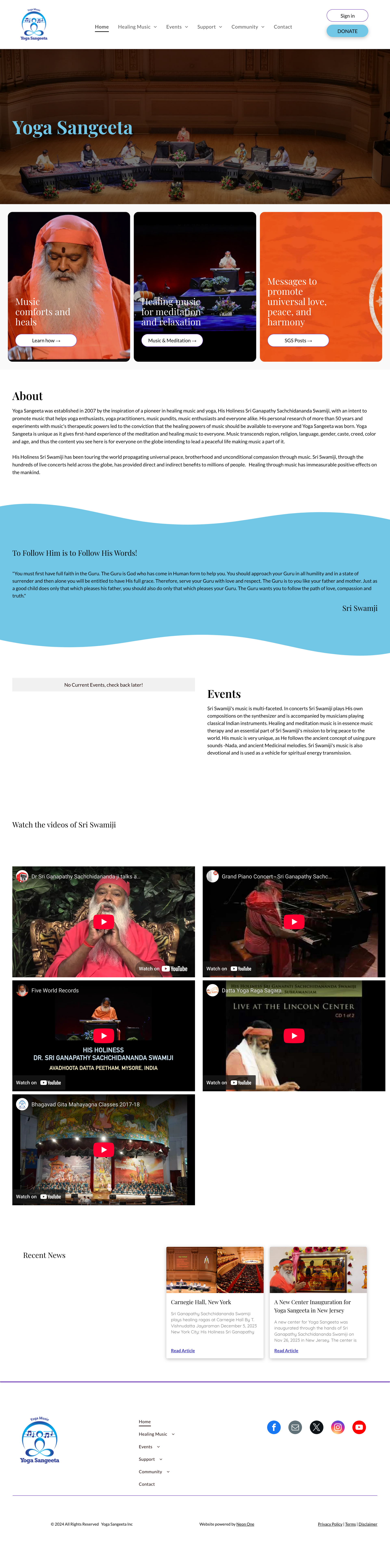 Yoga Sangeeta, a nonprofit dedicated to spiritual development and healing through music, had an outdated website with scattered subpages, making navigation difficult. Key information was fragmented across numerous pages, requiring excessive clicks to find relevant content. Additionally, they lacked a defined style guide, leading to visual inconsistencies.